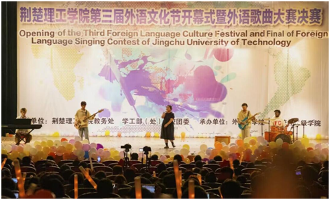 3月30日晚七点,由太阳成集团122ccvip承办的tyc122cc太阳成集团第三届外语文化节开幕式暨外语歌唱大赛决赛在荆楚理工会堂隆重举行。校党委常委、副校长戴伟出席开幕式并讲话,教务处处长田原、学生工作部(处)长祁红光、校团委书记王睿、国际处处长付华军及各二级学院相关负责人参加开幕式。付丽萍老师、何琳玲老师、胡然老师、金波老师和廖肖老师担任外语歌曲大赛的评委。