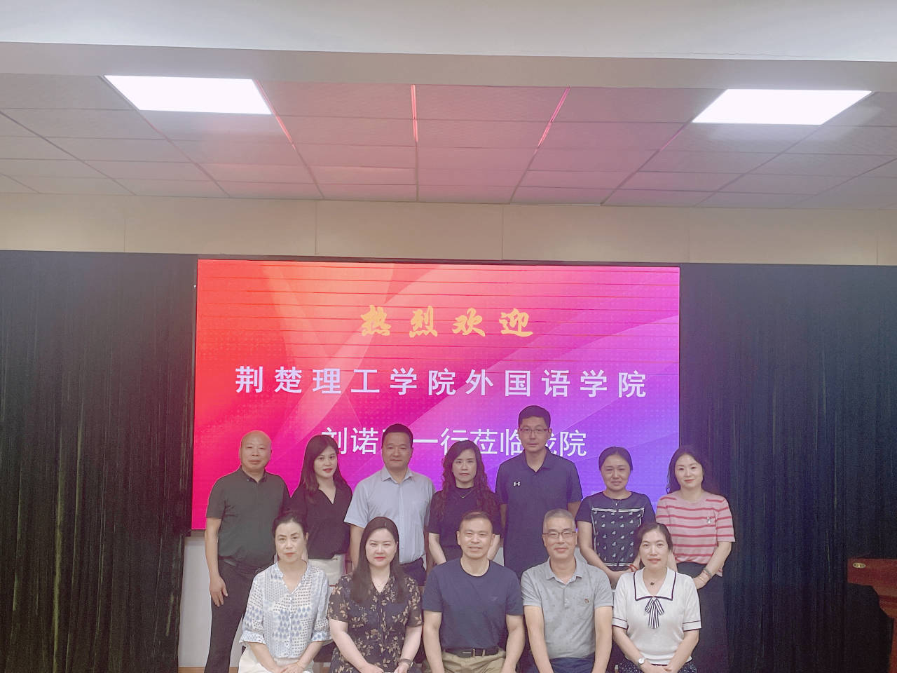 刘诺亚说明来意,本次考察之行我们带着问题来学习和交流,包括英语和商务英语专业人才培养修订,学科和专业建设,大学英语教学改革等。会上双方就以上各方面进行了广泛和深入的交流,尤其是对地方院校在人才培养模式改革,高层次人才引进,双师双能师资培养,教学和科研工作等方面达成了一致意见。
