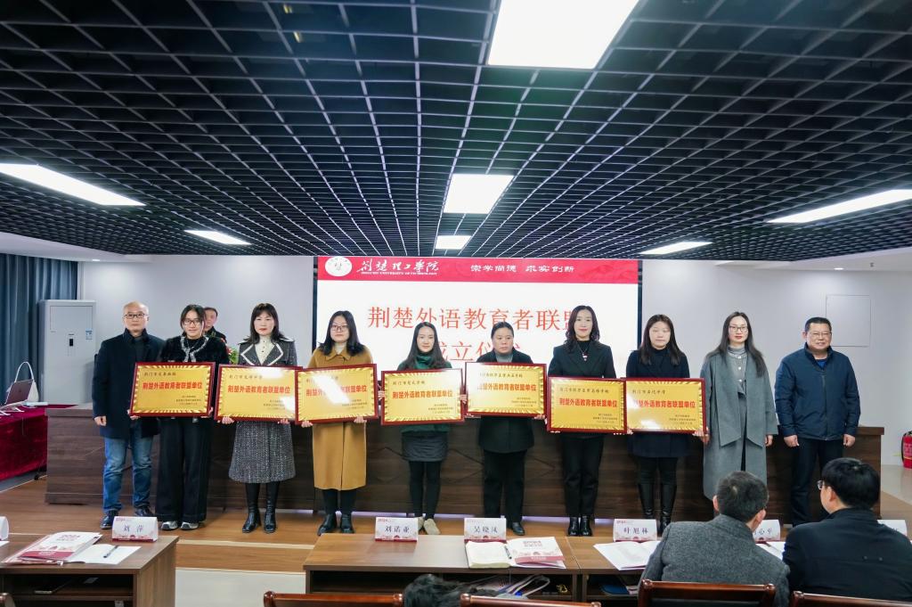 开幕式举行联盟授牌仪式,与会领导和嘉宾为22家单位和学校一一授予荆楚外语教育者联盟牌,标志着荆楚外语教育者联盟正式成立。本着促进交流,推动发展,合作共赢的主旨,联盟将在市教育局和tyc122cc太阳成集团的指导下,共同为荆门地方经济社会高质量发展贡献力量。