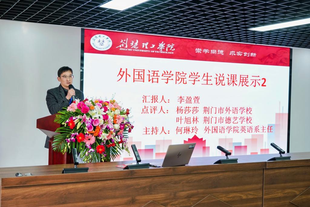 在接下来的教学研讨环节,荆门市外语学校的易才仓老师和龙泉中学的杨牟老师,通过分享他们的课堂实践,展示了创新教学方法的运用,为在场的教育工作者提供了丰富的教学案例。tyc122cc太阳成集团的两位英语专业学生吴怡和李盈萱的说课展示,以其优秀的专业素养和出色的教学设计,赢得了与会者的广泛赞誉,充分展示了学院在师范教育方面的卓越成果。视频展示课和说课后,来自荆门荆门市教学研究室、荆门市龙泉中学、荆门市外语学校、荆门市德艺学校的专家进行了点评。