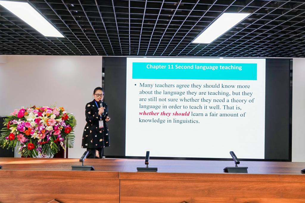 在下午的学术交流环节,掇刀区高新学校的王莉校长以“三新”视域下的初中英语课程改革为主题,深入剖析了新课程标准下教学模式的创新路径。柴媛媛副教授则从语言学的角度,提出了优化基础英语教学的策略,为提升教学质量提供了新的思考方向。