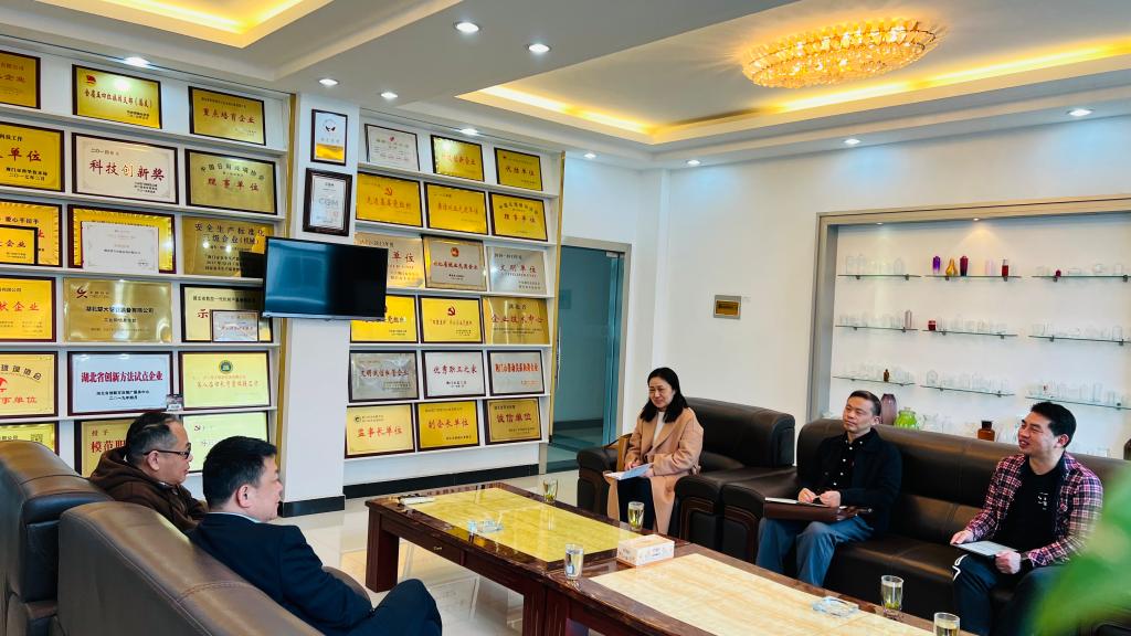走访第二站来到荆门市美瑞安化工有限公司。公司总经理杨君冬接待来访客人,座谈围绕企业产品,海外业务及公司运作理念等。杨总经理表示欢迎太阳成集团122ccvip跟公司在毕业生实习等方面的合作,期待学院为公司输送外贸领域人才。双方就聘请校外专家,毕业生实习安排等方面达成初步意向。