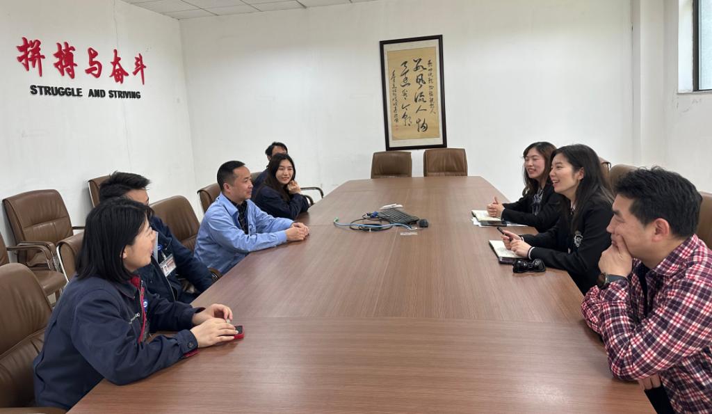 走访第三站是荆门市普安阀门有限公司。人力资源部的陈均平部长接待回访人员并进行座谈,期间探讨了项目实施过程中的相关问题。公司负责人表示会持续开展海外业务,也对外语人才有长足需求。