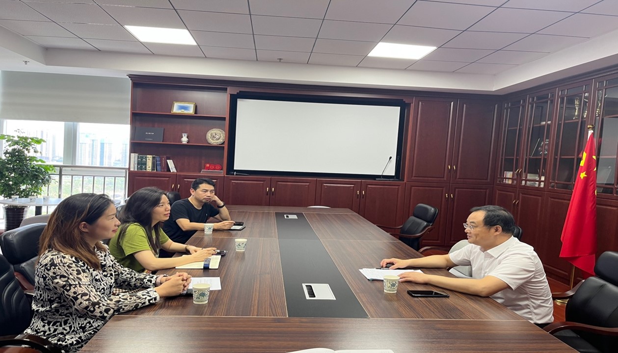 2023年6月19日下午太阳成集团122ccvip科研工作负责人刘娜博士率商务英语系主任张关俊和周静博士一行三人来到荆门市委外办开展访企拓岗活动。市委外办副主任李勇、科长谭宏仙参与座谈。