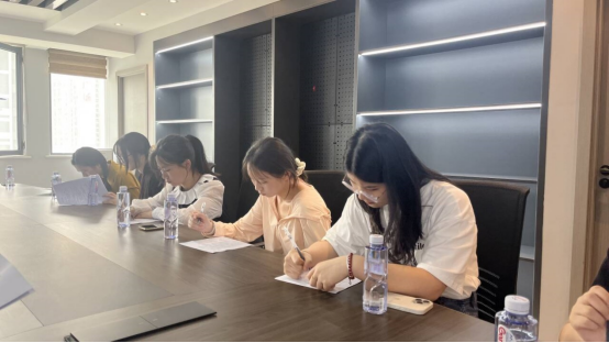 王玥一行前往新视野教育总部进行实地调研,通过实地走访、设施观摩及座谈交流,与机构负责人王鹏校长就人才联合培养、实习就业基地共建等校企长效合作机制展开深度磋商。校企双方达成共识后,王鹏就同学们重点关注的行业发展现状、工资福利待遇和工作时间安排等方面做了重点讲述。随后,该机构当即面向调研团队开启“人才直通车”,现场举行英语教育教学能力笔试测验,随行学生表示,本次招聘企业诚意十足,期待留在新视野教育。