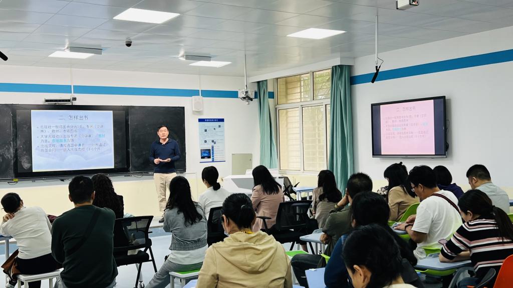 院长刘诺亚做开场讲话,他以个人在教材出版方面十多年的经历为例,简要提出活动举办的目的和意义,即为老师们在教材和著作等方面的出版提供知识普及和讲解,对出版项目进行个人指导和咨询。