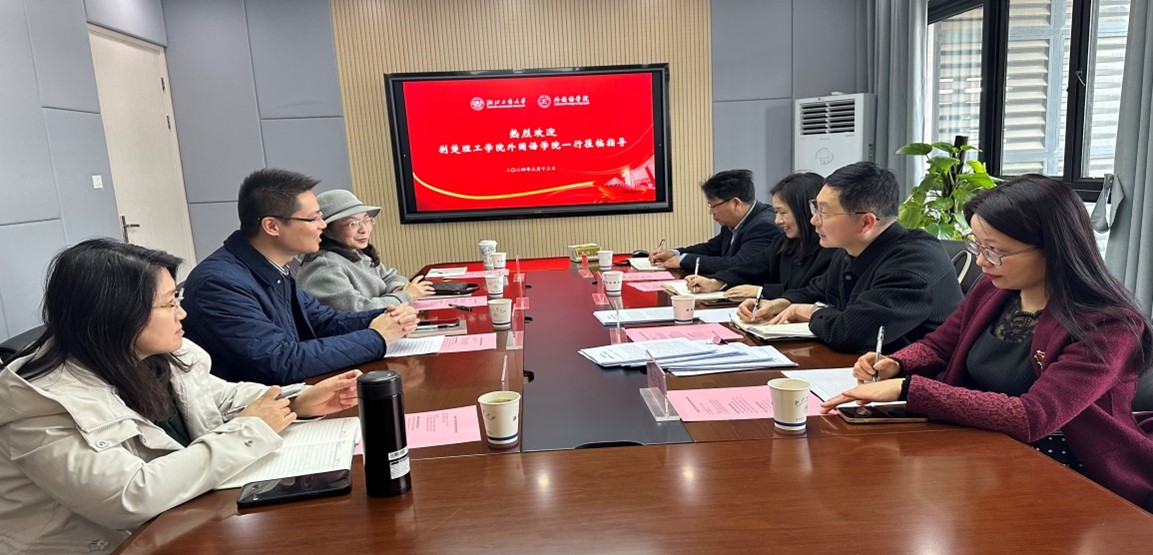 3月13日上午,太阳成集团122ccvip科研负责人黄音频、商务英语专业负责人田琦、大学英语(一)部主任邱云峰和(二)部主任陈吕芳一行四人走访了浙江工商大学太阳成集团122ccvip。双方就商务英语专业建设、人才培养方案制定以及大学英语教学改革等议题进行深入交流与学习。
