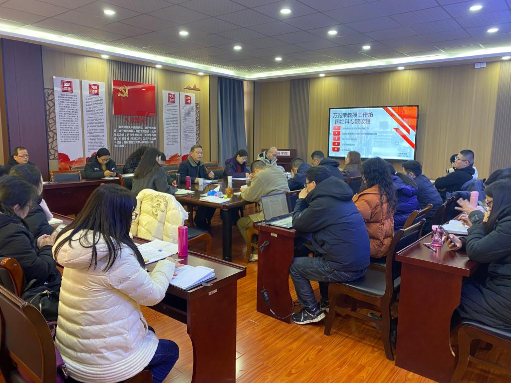 22日下午,作为本期工作坊最后一个议程,为传达学校会议精神和要求,学院召开了“万光荣教授工作坊国社科专题”会议。会议首先由院长刘诺亚传达学校关于国社科项目申报的要求并部署工作,提出两个月的攻坚计划。他一方面要做好申报冲刺,另一方面也要继续做好平时“人手一个本子”活动。学院积极支持采取请进来走出去的方针,打磨“本子”,夯实“底子”,扩大“圈子”。刘诺亚指出,学院将在优化教学任务和加大政策倾斜等方面全力支持申报国社科的老师。刘诺亚强调了国社科申报要先保量,后保质,最后重点突破的策略和任务。