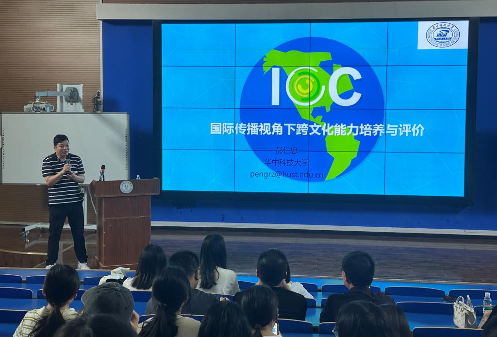 6月9日下午三点,华中科技大学彭仁忠教授应邀到我院做题为“国际传播视角下跨文化能力培养与评价”的学术讲座。讲座在钟楼3楼无边界教室举行,我院150余名师生参加。讲座由院长刘诺亚主持。