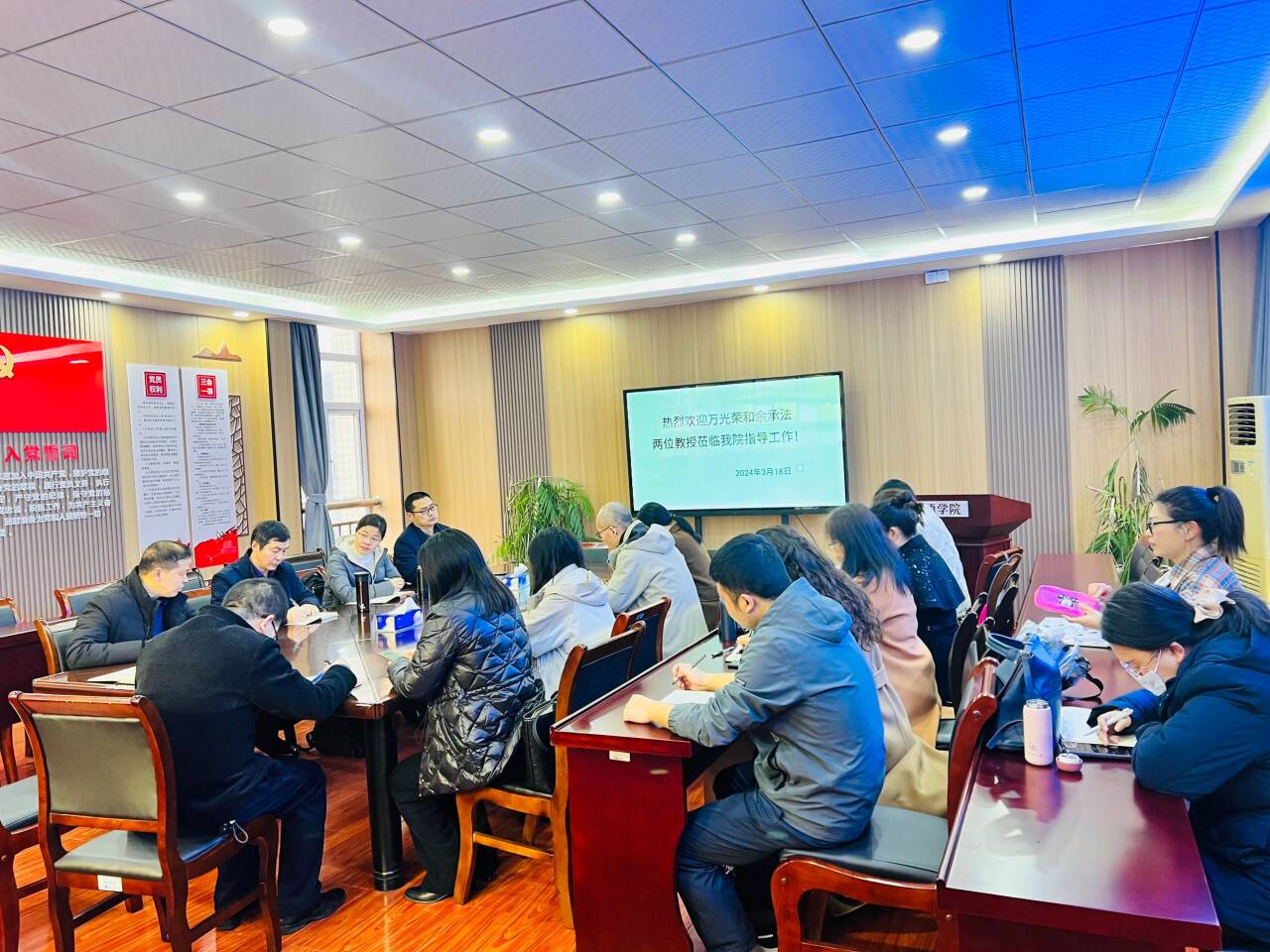 在座谈环节,万光荣、余承法教授与我院教师就2024年度科研申报项目本子的修改和科研选题等方面进行面对面指导交流。