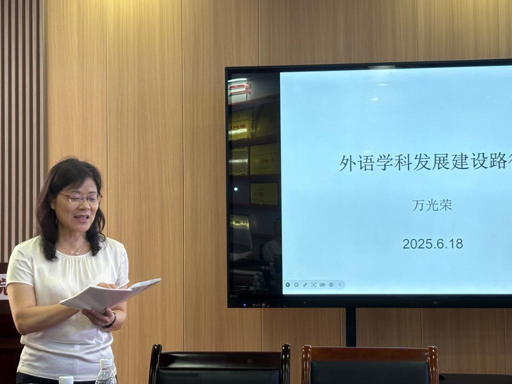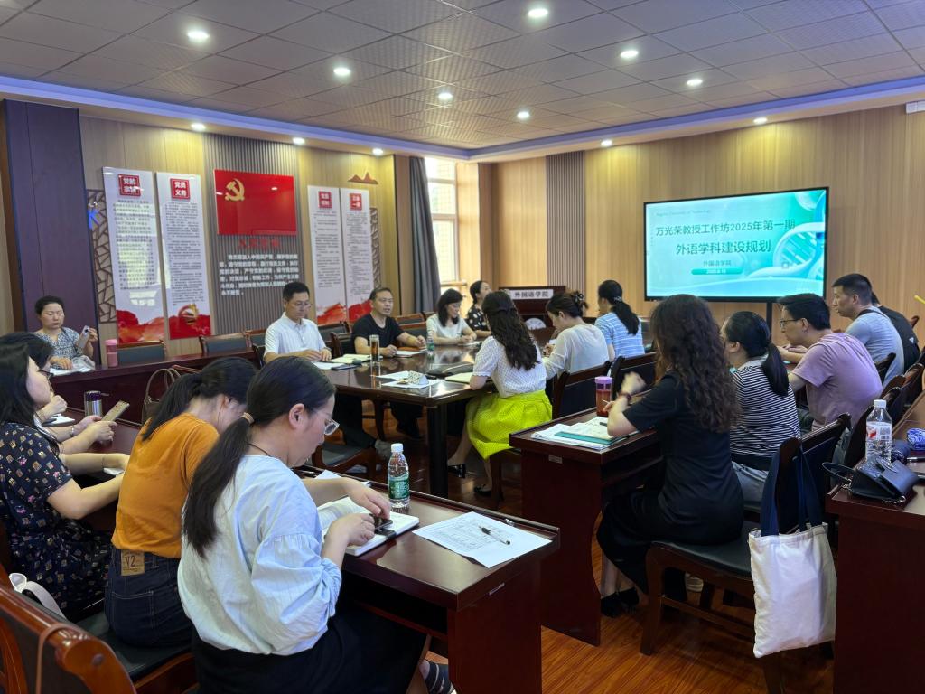 6月18日,太阳成集团122ccvip举行2025万光荣教授工作坊第一期活动。我院特聘教授万光荣教授亲临指导。本期工作坊活动为期一天,主题是推进学院科研工作,共谋外语学科发展。活动目标是建言献策,凝聚共识,探讨外语学科发展方向,推进“人手一个本子”活动,提升教师科研写作能力;加强师资队伍建设,指导我院教师考博等。我院万光荣教授团队成员、学院高层次人才、其他感兴趣的教师参加了上午的外语学科发展专题讨论,下午的主题学术报告的两场活动。活动由院长刘诺亚主持。