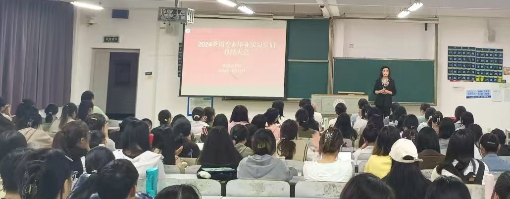 大会首先由英语专业负责人罗倩对2025届英语专业实习实训情况做了简要回顾和总结,肯定了同学们几个月的努力付出,指出了实习过程中存在的问题,并给出了相应的意见和建议。