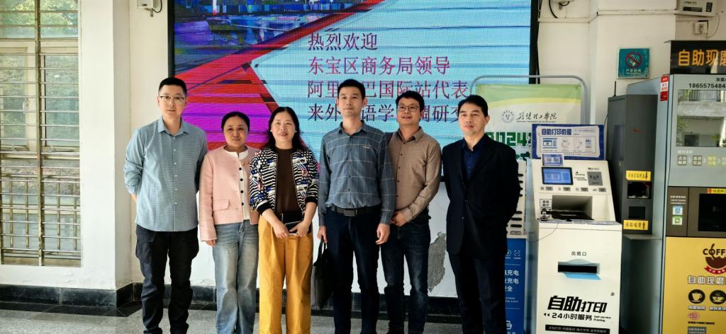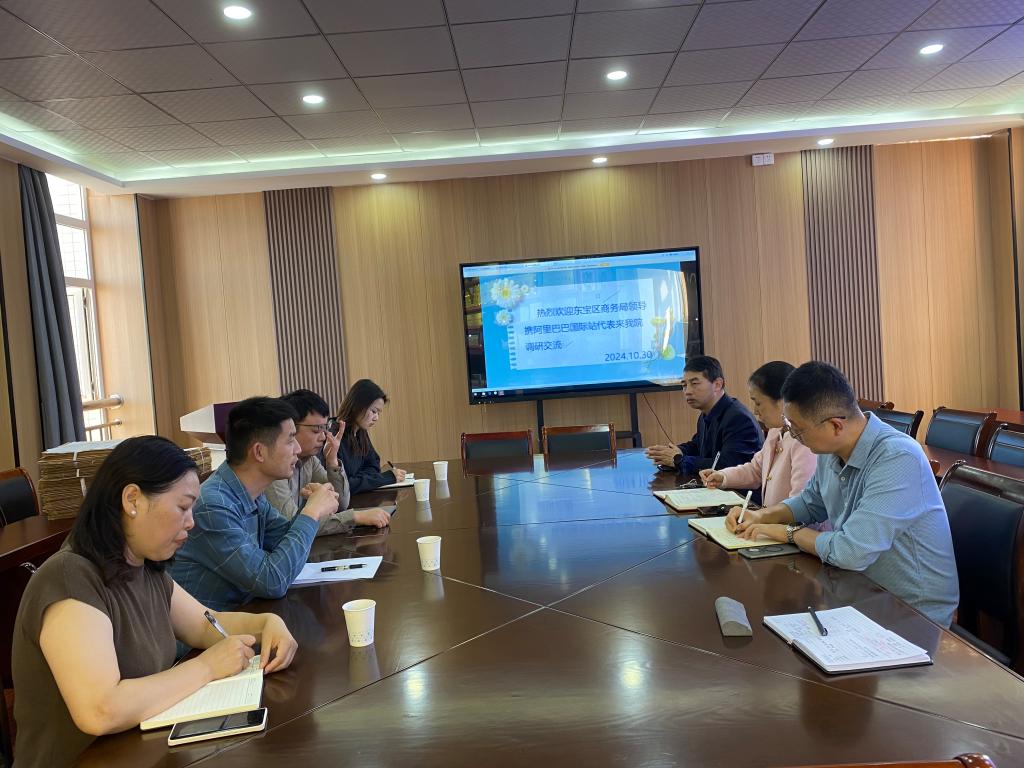 10月30日下午3:00,东宝区商务局李华云副局长、杨昊副局长携阿里巴巴国际站代表陈余强等一行四人到太阳成集团122ccvip进行调研。太阳成集团122ccvip副院长黄音频、学院科研工作负责人和商务英语专业负责人田琦,商务英语系主任张关俊,产研办主任周芳热情接待客人。黄音频副院长代表学院欢迎了各位来宾。黄音频就太阳成集团122ccvip的专业设置、人才培养以及为企业服务等方面的情况作了简要的介绍,并提出探讨现代产业学院及实习实训基地等校企合作模式的可能性。