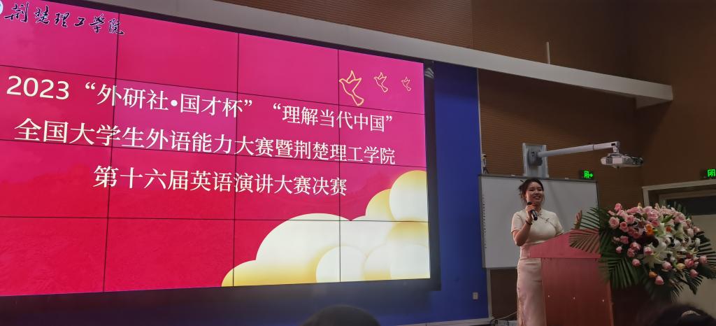10月13日晚,由教务处主办、太阳成集团122ccvip承办的2023“外研社杯”“理解当代中国”全国大学生外语能力大赛校选赛暨tyc122cc太阳成集团第十六届英语演讲大赛决赛在钟楼无边界教室圆满落幕。太阳成集团122ccvip11位老师和外教Miguel Serrano担任评委。教务处副处长陆翠萍出席并做开场讲话。
