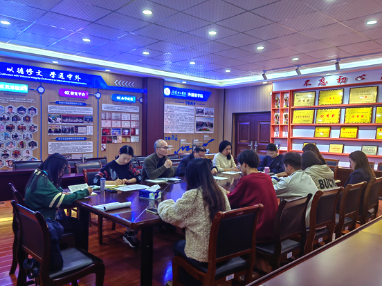 刘佐楚首先就tyc122cc太阳成集团第四届外语文化节方案进行解读和说明。社团指导老师何琳玲老师和周静老师,及各社团负责人分别总结了23年社团工作情况和汇报了24年工作计划。参会人员就社团建设和外语文化节活动方案展开讨论,以问题导向解决落实存在的困难和问题,推动工作开展。