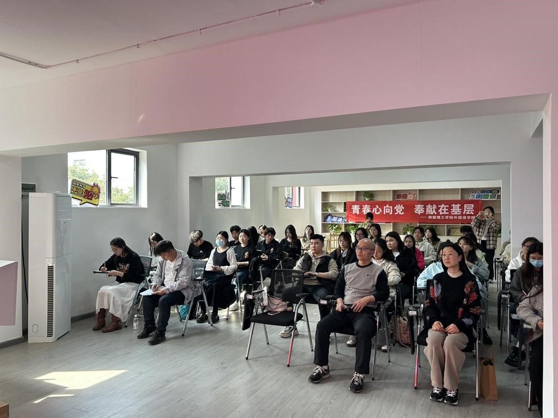 为深入学习贯彻党的二十大精神,认真学习习近平总书记关于青年工作的重要思想,帮助我院学生进一步了解基层工作。3月22日下午我院特邀第六届“长江学子”、学院2016届英语专业优秀毕业生陈青,回校为同学们做“青春心向党,奉献在基层”专题思政讲座,讲座在学生一站式社区举行。学院党总支书记赵德军、副书记王玥、全体辅导员及各年级优秀学生代表出席本次活动。