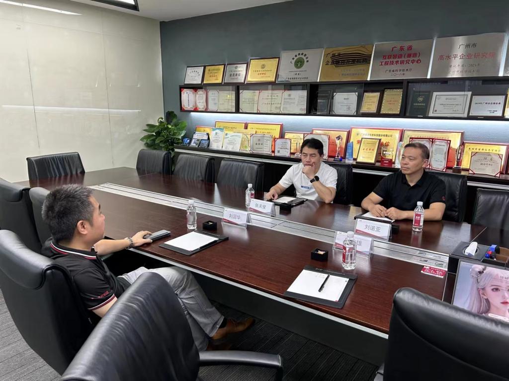 在广州,考察团还走访了总部位于广州的赛意信息科技股份有限公司。广州赛意信息科技股份有限公司是一家IT咨询服务公司,成立于2005年,并于2017年8月在深圳证券交易所挂牌上市。公司联合创始人、实际控股人之一、副总经理刘国华是我院校外特聘毕业实训指导老师。刘国华热情接待刘诺亚一行,在参观了公司后双方进行座谈。刘国华对公司的历史和成就进行了简要介绍,重点阐述了个人哲学思想在公司运营和管理理念中的体现。刘诺亚感谢刘总支持学院工作,在肯定了前期合作基础之后,双方初步商讨了校企合作可能性,并邀请对方到我院为师生讲学,指导学生实训和就业。